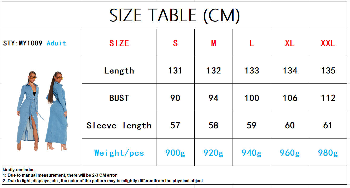 Copy| Product Name | Denim Trench Coat Autumn and Winter Lapel Strap Long Dress |