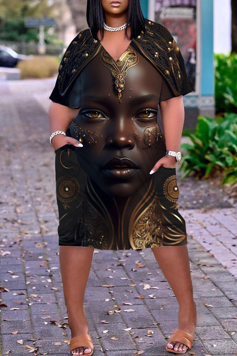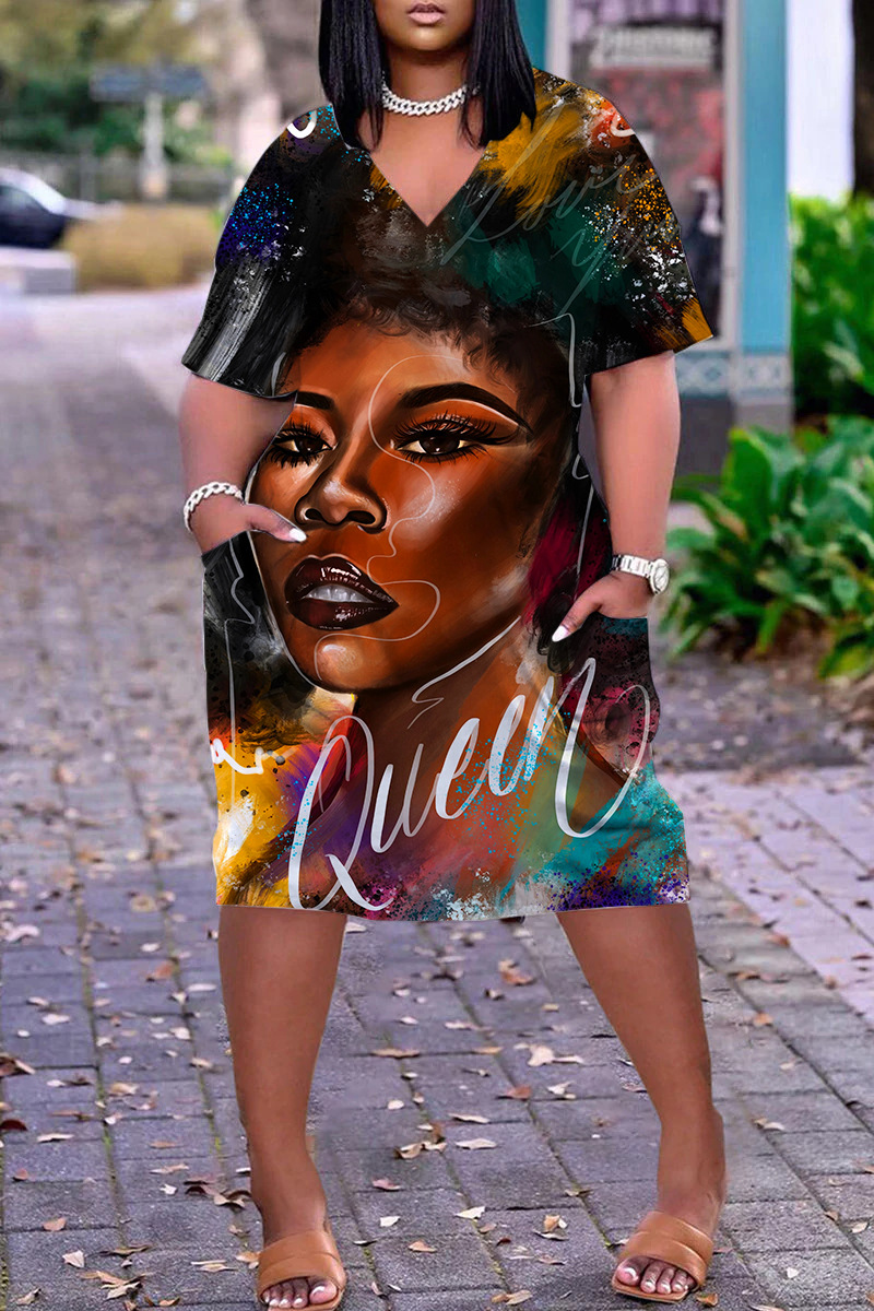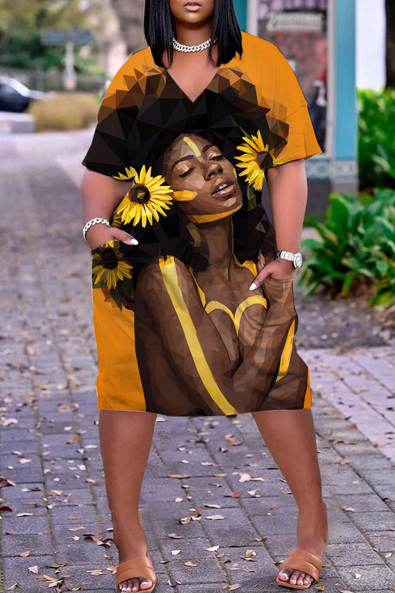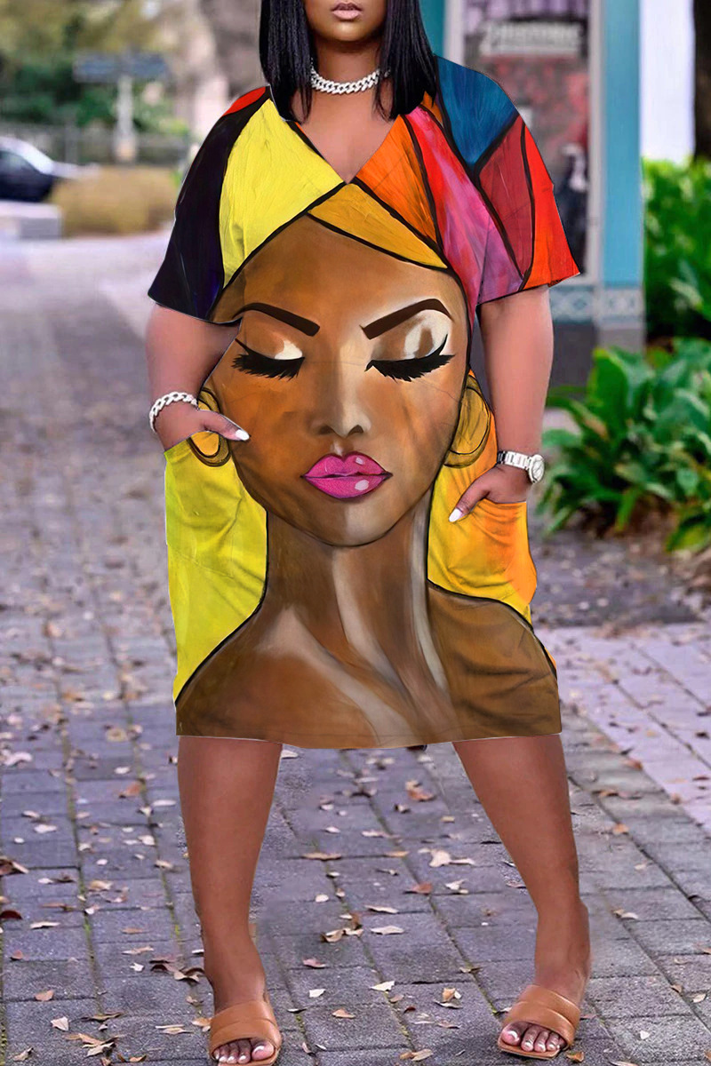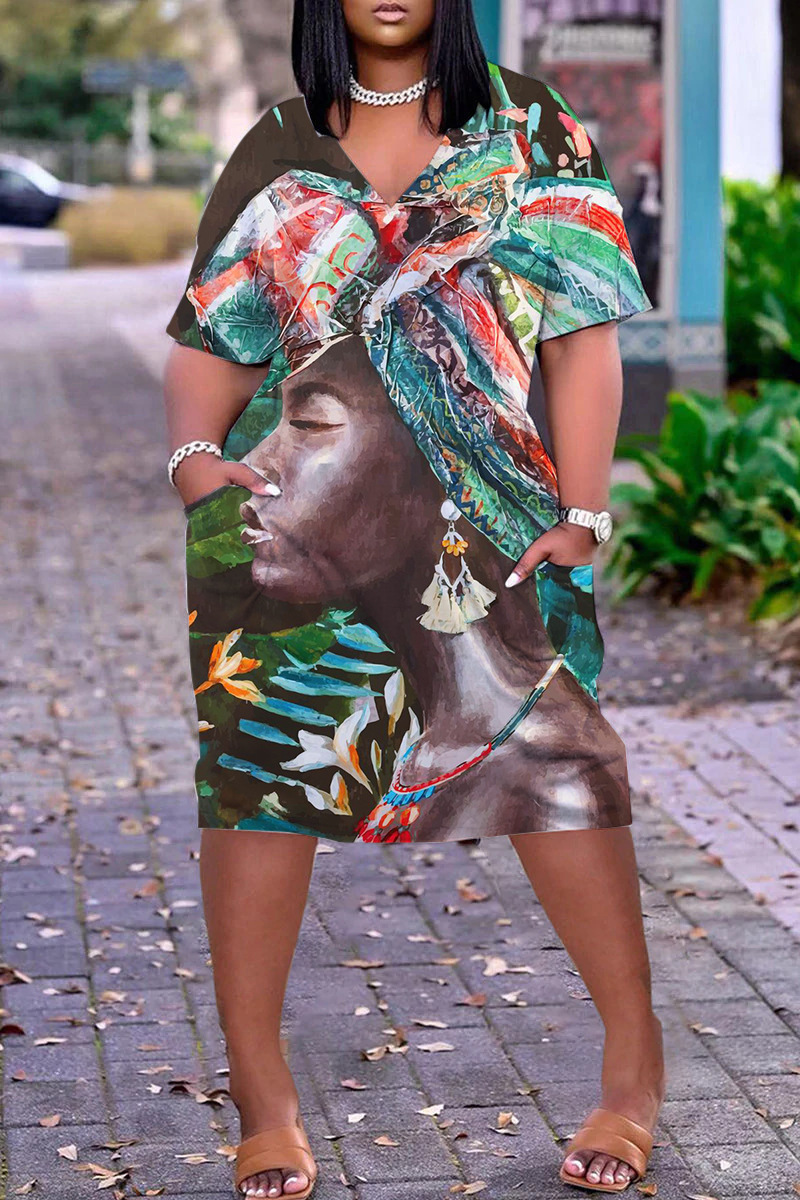 Home>DRESSES>Print Dress>Pullover, V-neck dress, loose casual