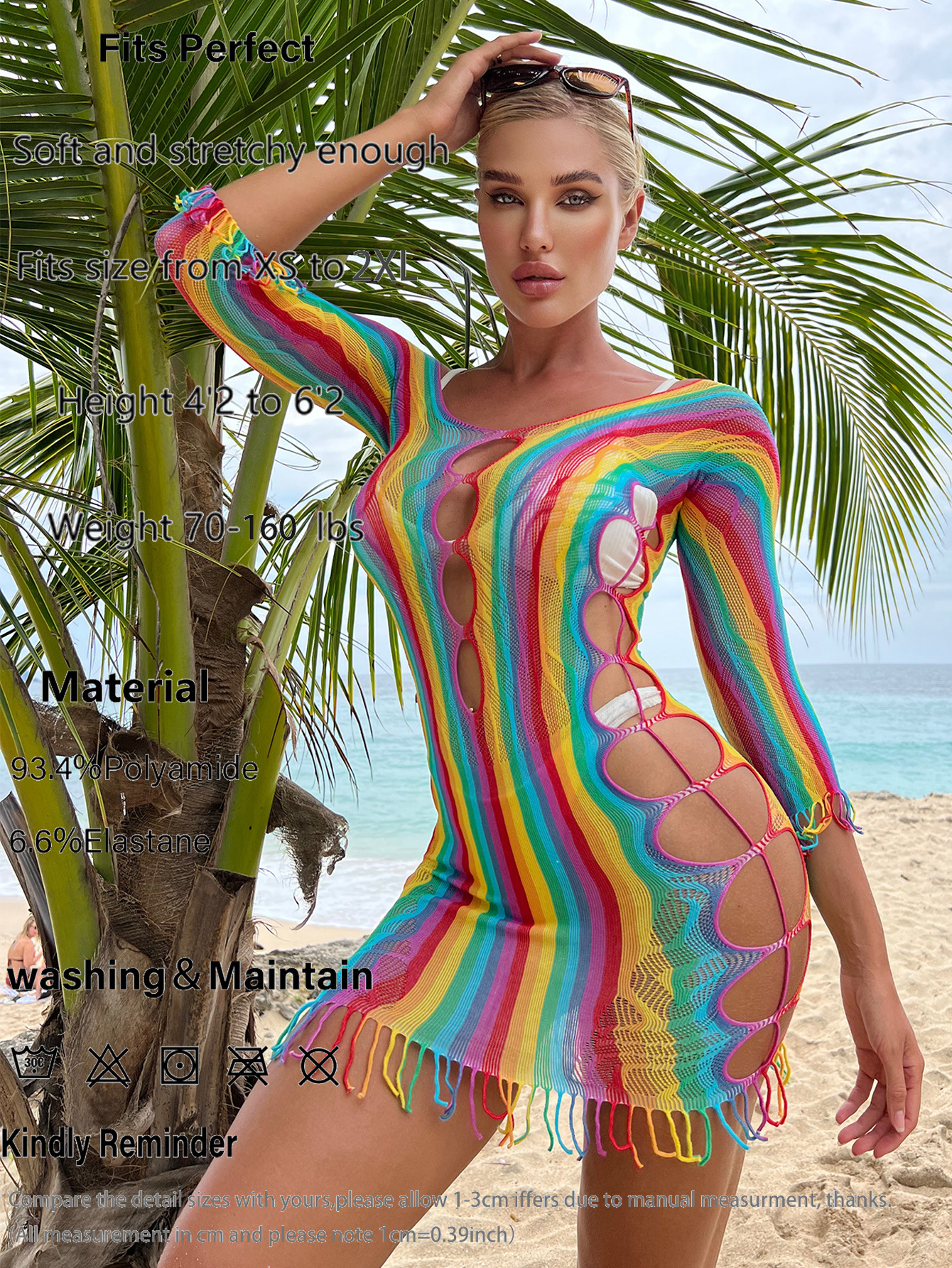 | Product Name | Rainbow striped tassel hollowed out sexy lingerie |