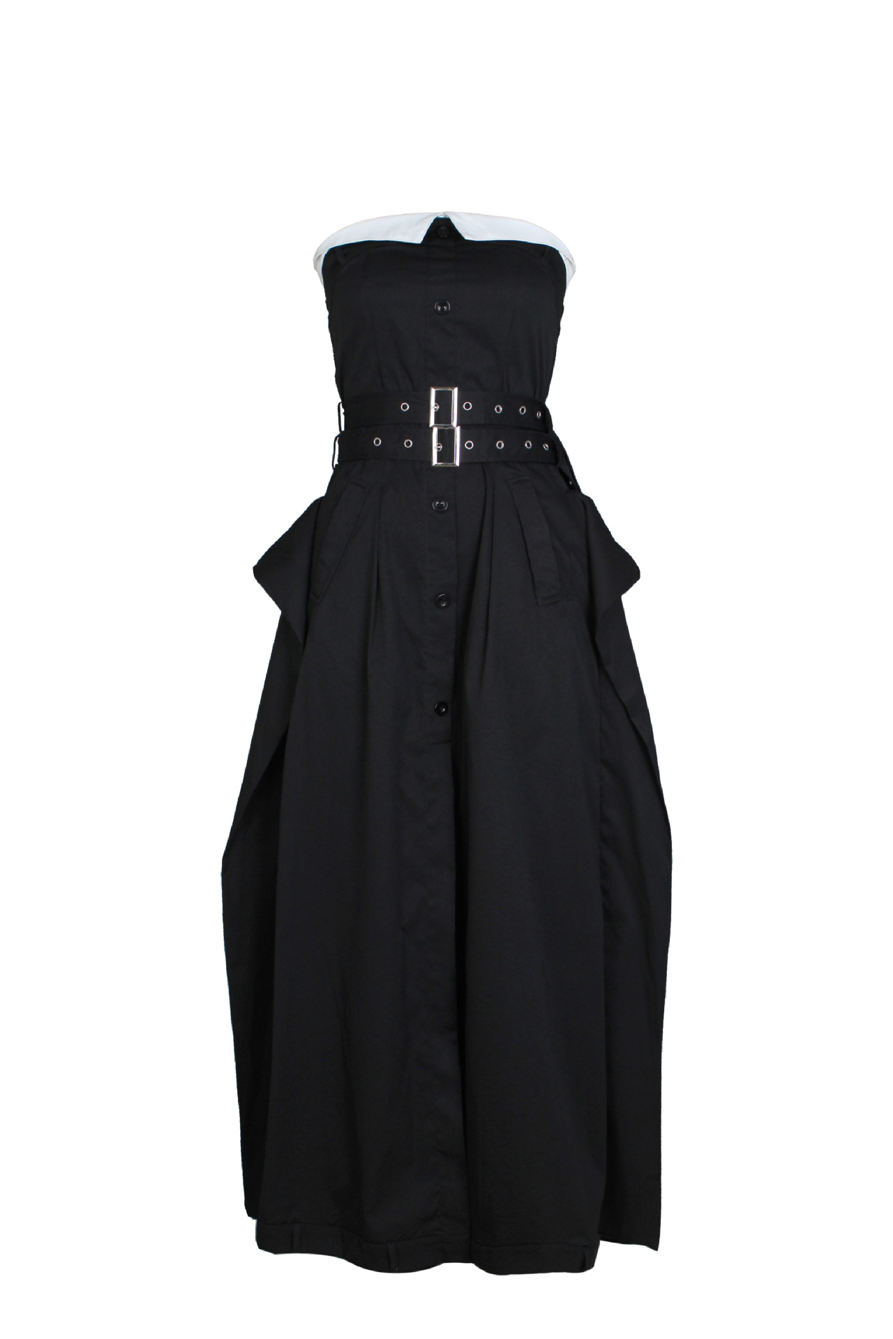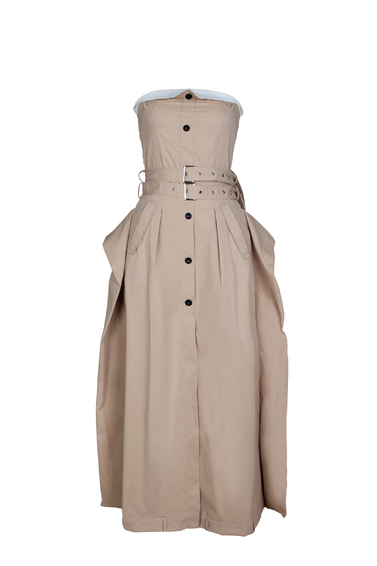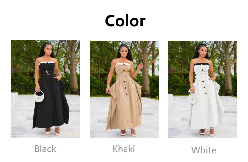 Copy| Product Name | Single-breasted Chest Wrapped Double Belt Large Hem Skirt Slim Dress |