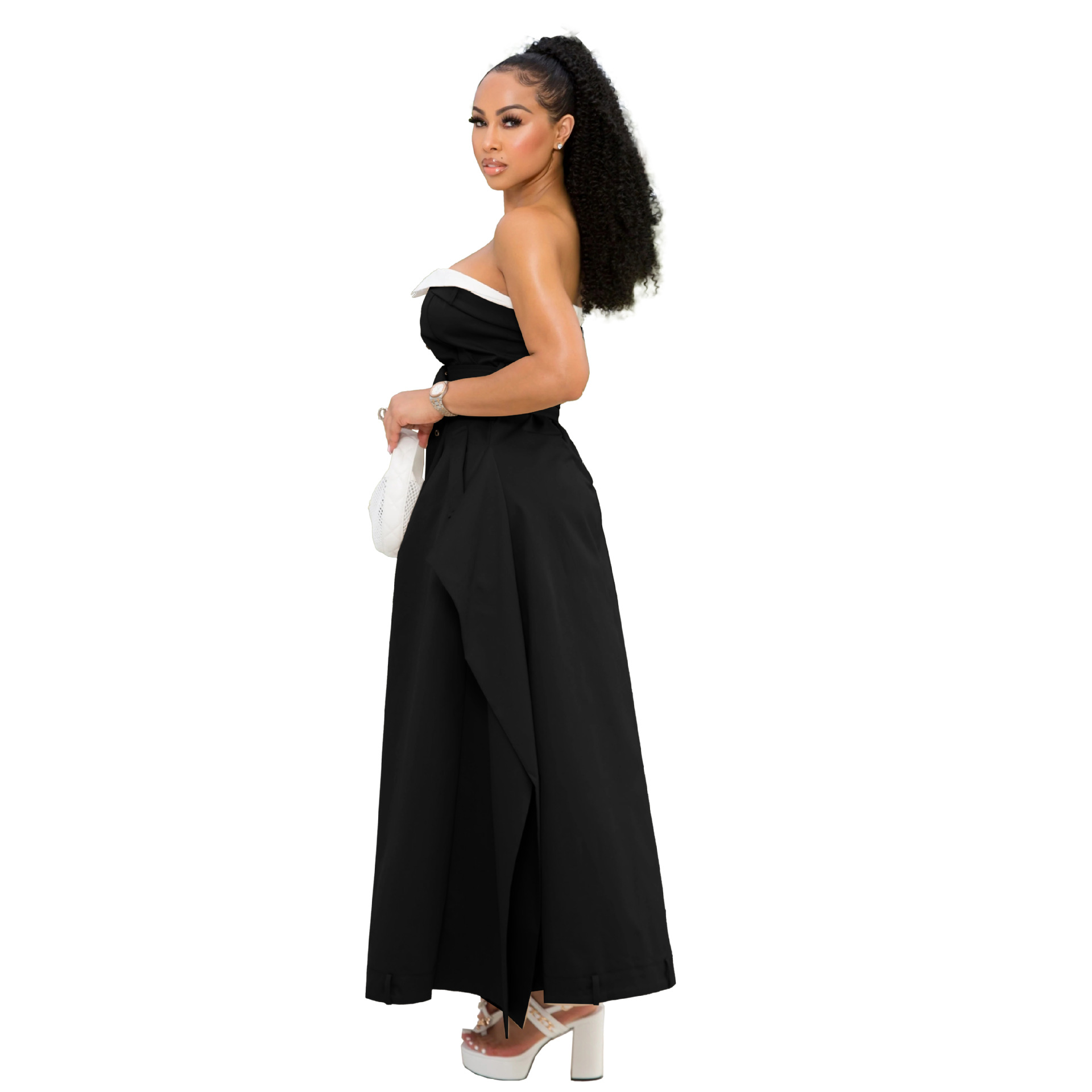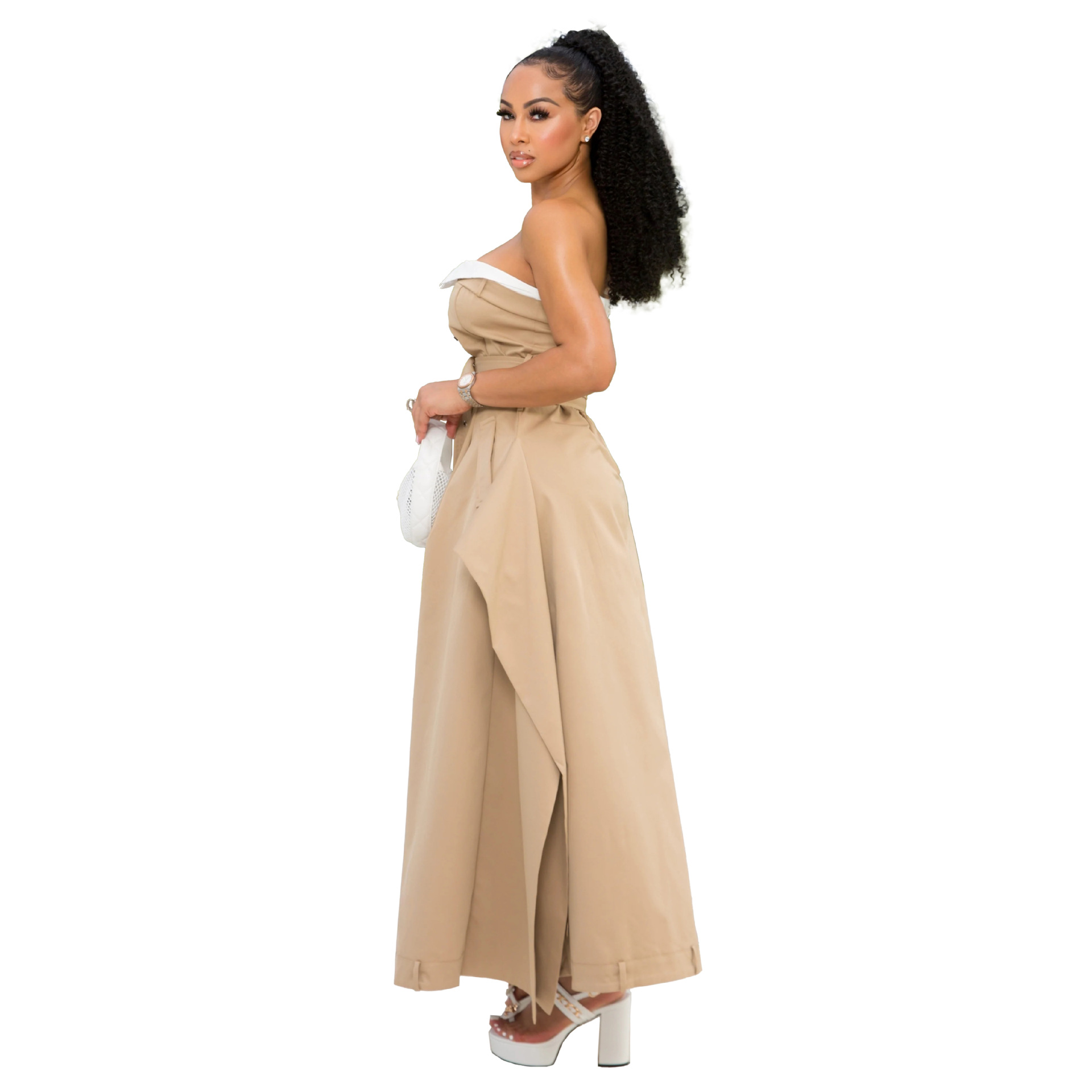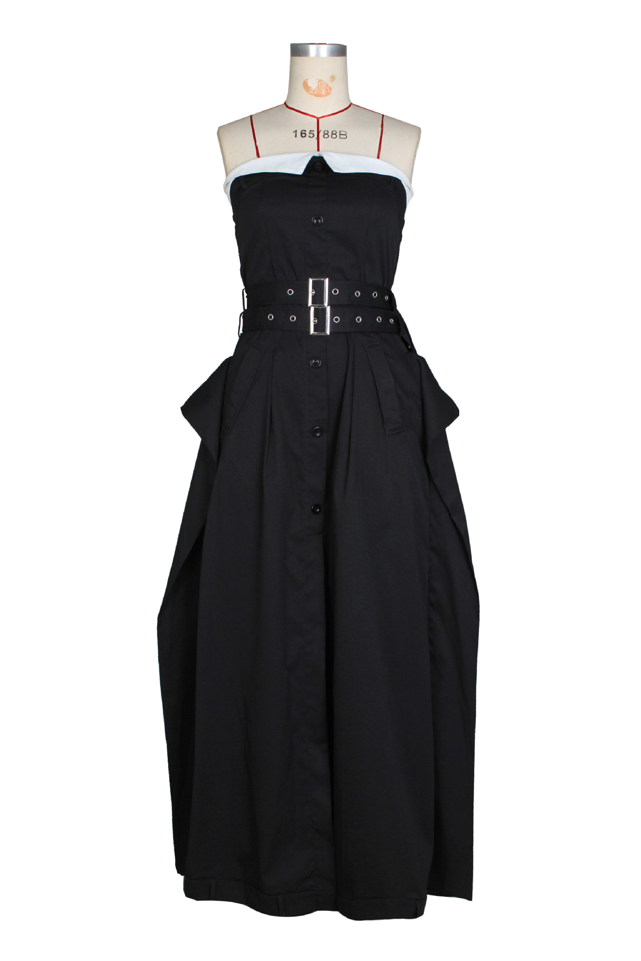 Copy| Product Name | Single-breasted Chest Wrapped Double Belt Large Hem Skirt Slim Dress |