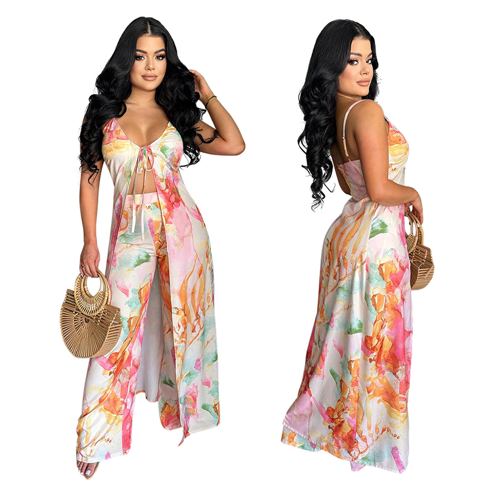 Copy| Product Name | Sling Lace-up Top with Slim Fit Wide-leg Pants Two-piece Set |
